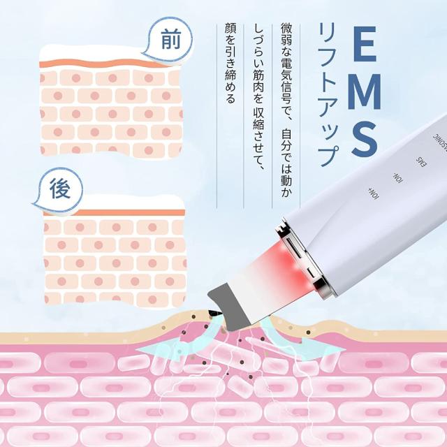 【EMSリフトアップ 悩みない理想な美肌へ】微弱な電気信号で、自分では動かしづらい筋肉を収縮させて、顔を引き締めます。それに、赤光エステ、青光エステ機能も搭載します。