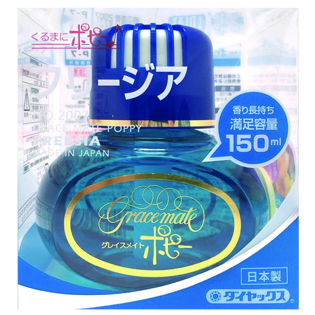 グレースメイトポピーはカー香水のベストセラー商品です。たっぷり入った150ml容量は香りの持続性に優れること、香りそのものが幅広いユーザーに受け入れられていること等がロングセラーのポイントです。