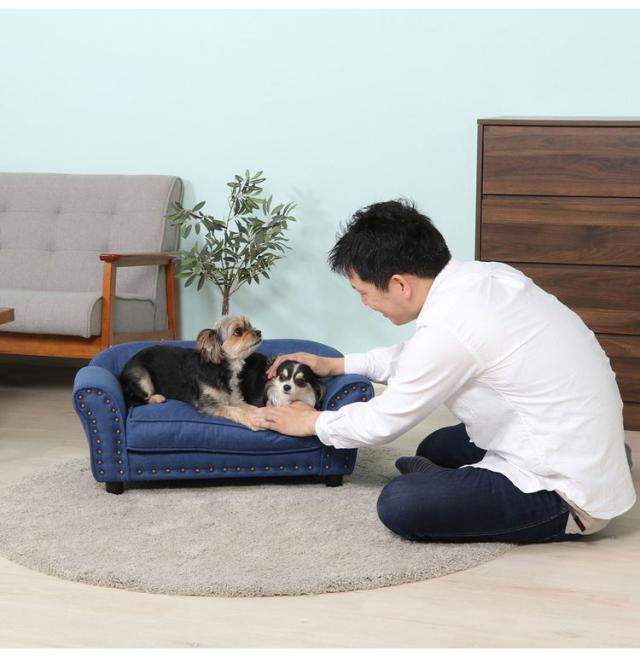 イギリス発祥の伝統的なソファスタイルであるチェスターフィールド調デザインです。背もたれや脇のクッションにあごを乗せたり好きな姿勢で思う存分くつろげます。夏はべたつかず、冬はひんやりとしない、ファブリック素材を使用しています。また、座面部分は手洗いできるので衛生面も安心です。沈み込みすぎない柔らかさで、ペットも登り降りしやすい◎ソファの脚は取り外して使用可能。体の大きさに合わせて高さをお選びいただけます。リビングにおいても邪魔になりにくいサイズ感なので、ペットと一緒にくつろぎの時間を過ごせます。