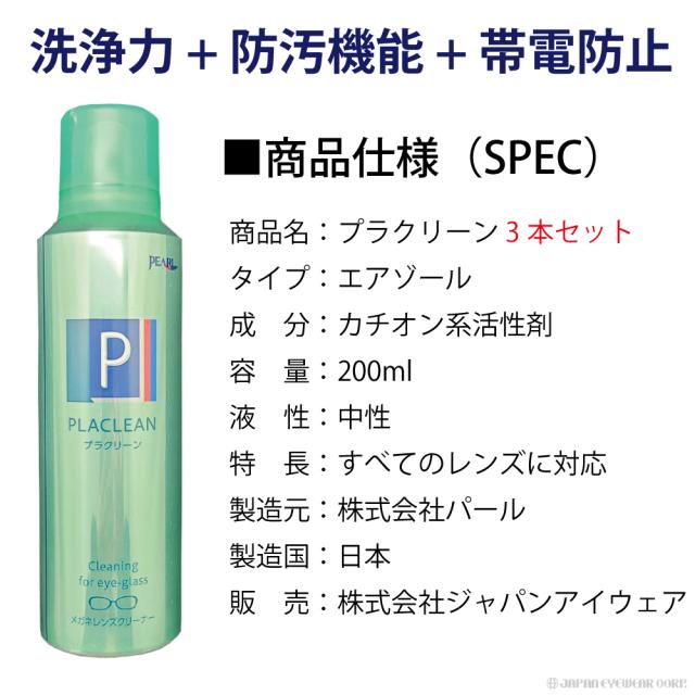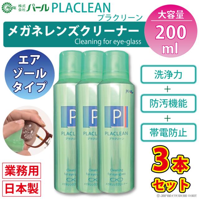 メガネ レンズ クリーナー 3本セット 業務用 眼鏡 エアゾール メガネレンズクリーナー プラクリーン ×3 PLACLEAN 業務用 200ml パール PEARL 防汚 帯電防止 PEARL レンズ 汚れ 日本製 除菌