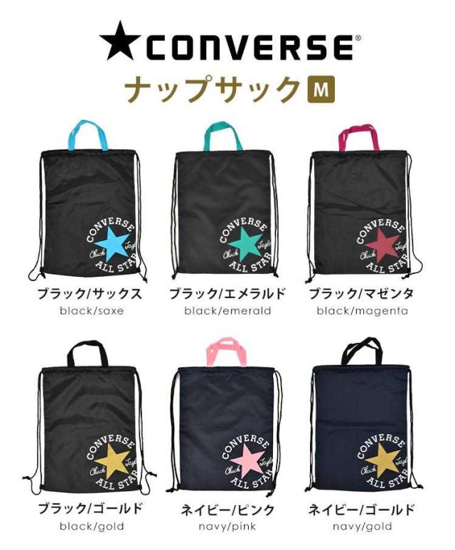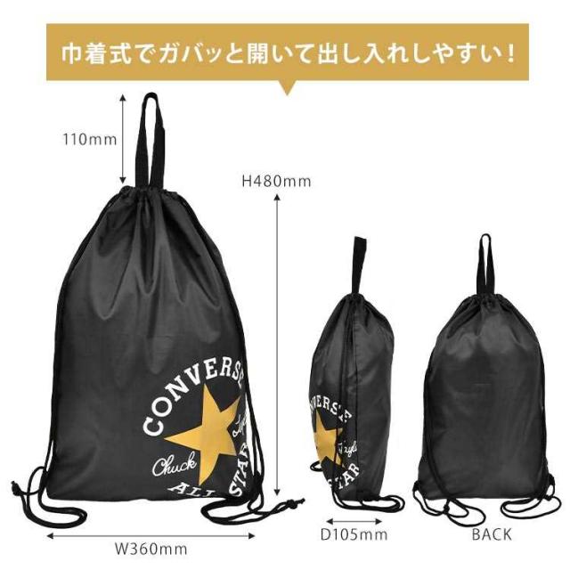 ナップサック CONVERSE コンバース オールスター 男の子 女の子 小学校 小学生 子供 キッズ ジムバッグ ジムサック 体操服入れ 体操服袋 体操着入れ スポーツ ブランド ナップザック リュック 軽量 持ち手 A4 B4 シンプル 黒 紺 学校 中学生 遠足 通学 メンズ レディース