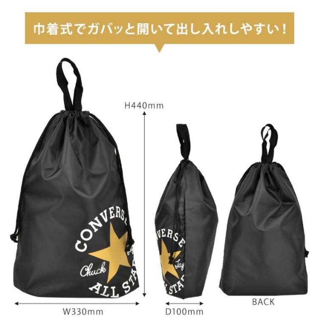 巾着袋 大 体操着入れ 上履き入れ コンバース オールスター CONVERSE 男の子 女の子 体操服入れ 体操服袋 体操着入れ ジムバッグ シューズケース シューズ袋 着替え袋 ポーチ マチ付き 軽量 持ち手 黒 紺 かっこいい シンプル 通学 中学生 スポーツ 大人 メンズ レディース