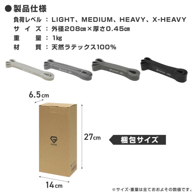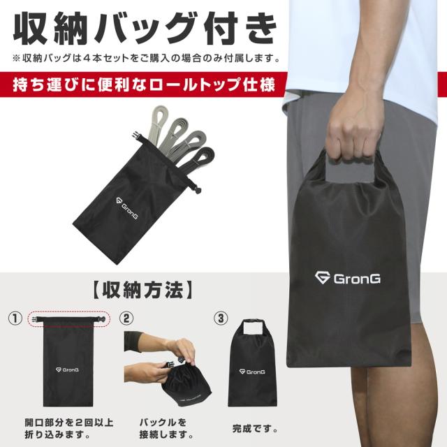 グロング GronG トレーニングチューブ ゴムチューブ 筋トレチューブ バンドタイプ 外径208cm 負荷別 4本セット 収納バッグ付き