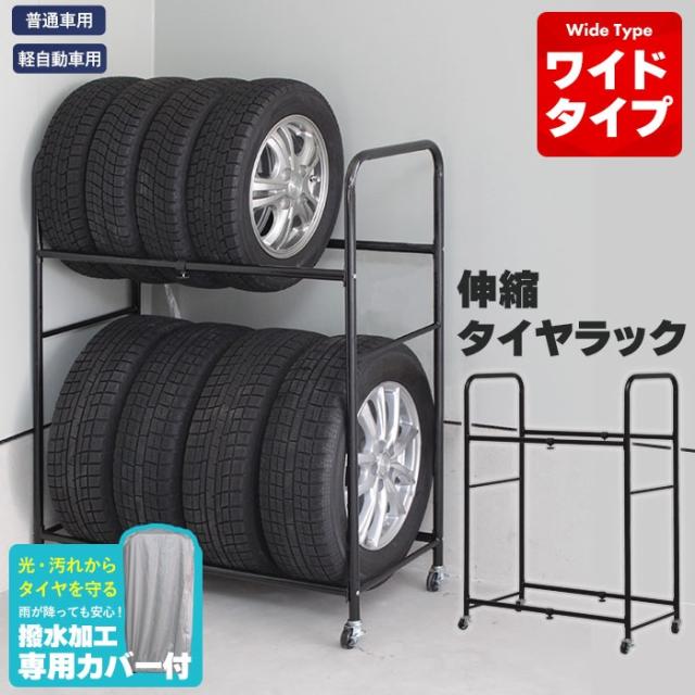 | タイヤラック タイヤ 8本 収納 保管 ワイドタイプ 2台分 伸縮 タイヤスタンド カバー付 タイヤ収納ラック タイヤラック タイヤ収納 物置 ワイド タイヤ キャスター タイヤラック |