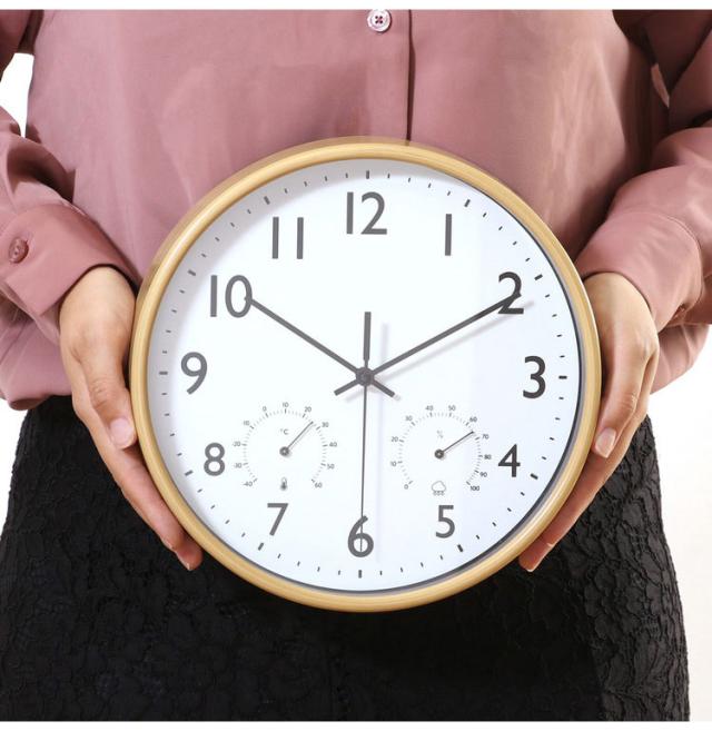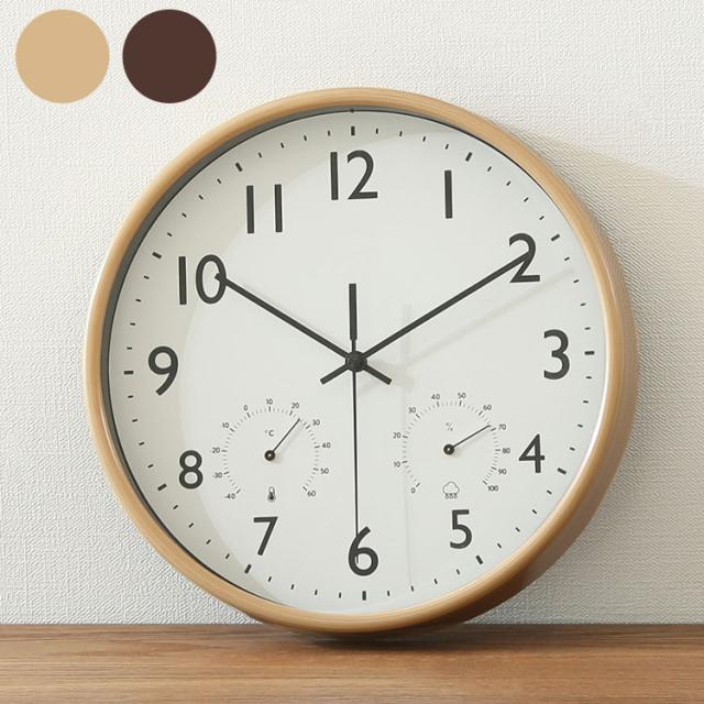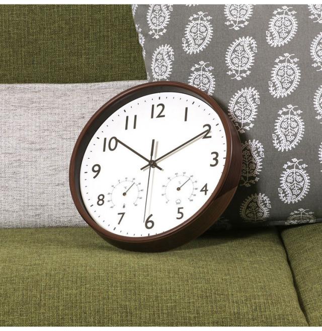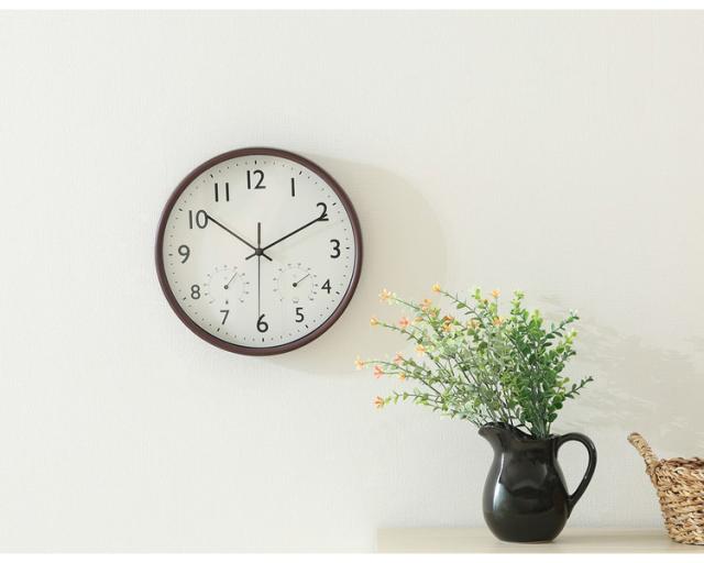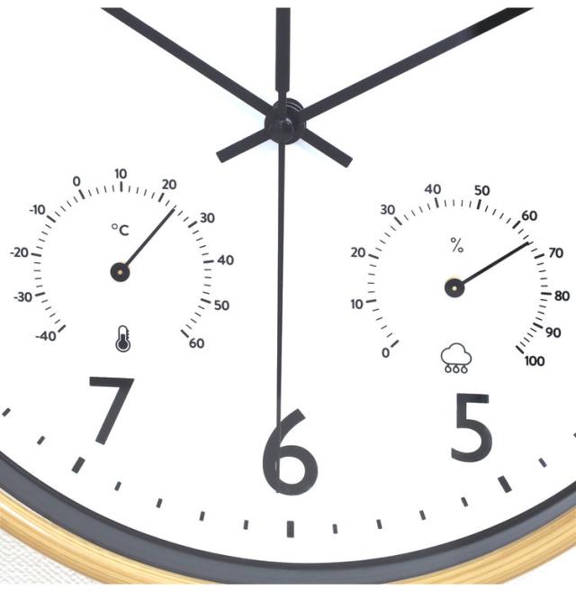 掛時計 直径25.5cm 温湿度計付き 壁掛け時計 クロック 静音 静か 時計 北欧 おしゃれ シンプル インテリア雑貨 プレゼント 新生活 一人暮らし(代引不可)【送料無料】