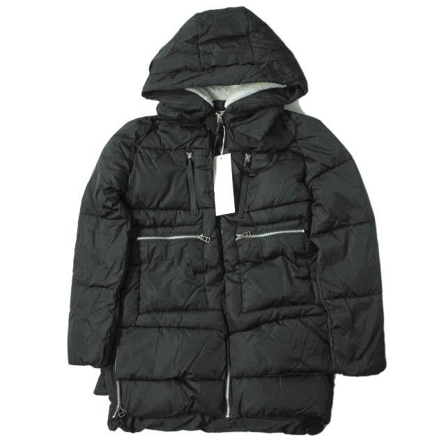 新品 no brand ノーブランド ボア付き フーデッドミリタリーダウンコート L BLACK 中綿 ZIP アウター