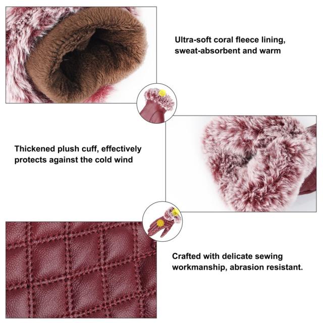 スマホ手袋 ファー付き 防寒 スマートフォン PUレザー タッチグローブ スマートフォン 手袋 つけたまま操作 保温性 厚手 スマートフォン対応 シンプル 防風 防水 おしゃれ 自転車 防寒防風