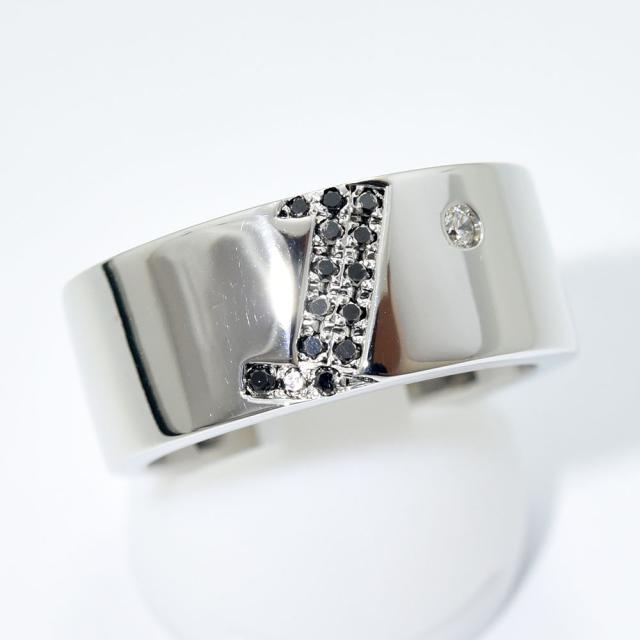 ポンテヴェキオ リング Ponte Vecchio 指輪 No.1 ナンバー 1 ブラックダイヤ 0.15 ダイヤモンド 0.03 K18WG 750 約19号 新品仕上げ 中古