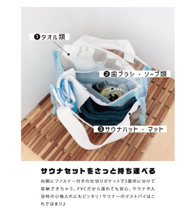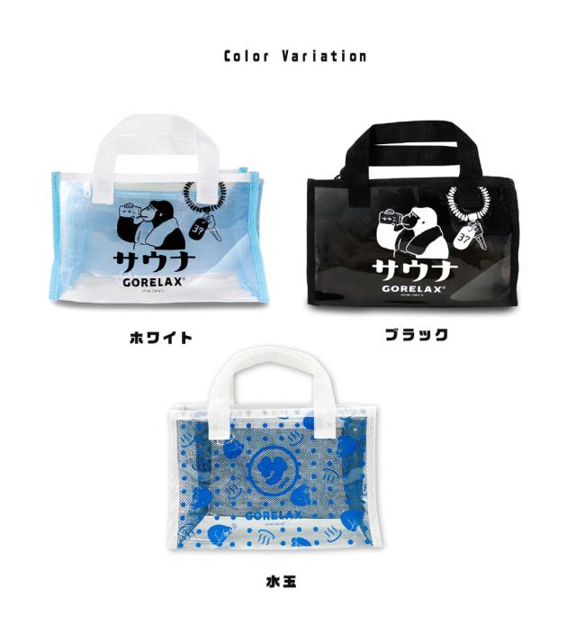 クリアバッグ ビニールバッグ トートバッグ スパバッグ サウナ サ活 アウトドア ごりら レジャー プール 海 スポーツ スパ 温泉 小さめ ミニ 透明 手提げ マチあり マチ広 ロゴ 白 ごリラックス ととのいサ活バック