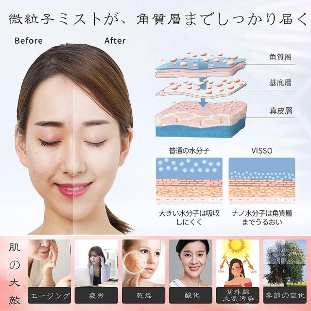 【ナノ超微粒化技術&20倍の深層補】ナノスチーマーはナノ超微粒化技術を採用で、水を1MMの100万分の1以上の細かい粒子のナノ水分子に変換するため。美顔スチーマーは安定したスチーム量1.8倍の濃密スチームで顔を柔く包み込み、皮膚への浸透力を20倍以上アップさせる!潤い持続同時にクレンジングエステで毛穴レス美白肌へ。今は快適で家でスパ級の顔のスチームケアの美容効果を享受できます。
