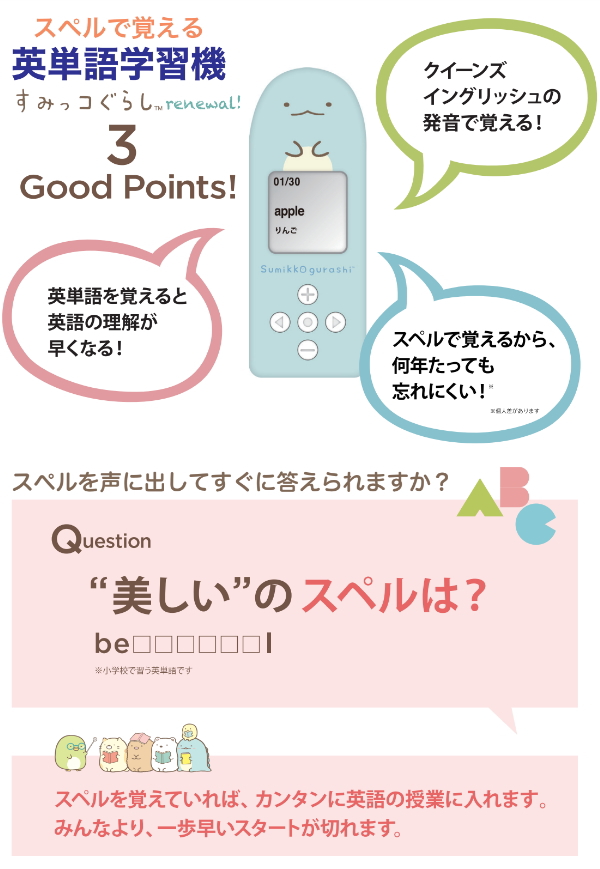 スペルで覚える英単語学習機 本体 すみっコぐらし リニューアル すみっコぐらしの英単語学習機 すみっコぐらし 英語 学習 教材 すみっこぐらし 小学 中学 英単語 小学生 中学生 イギリス英語