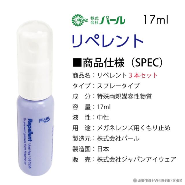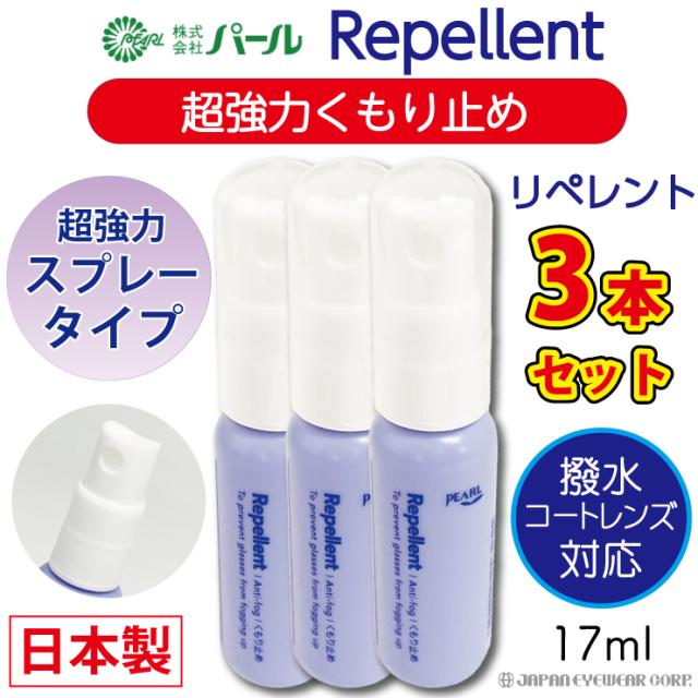 超強力 曇り止め メガネ 眼鏡 パール パール リペレント 3本セット くもり止め メガネのくもり止め スプレータイプ クリーナー PEARL レンズ 汚れ くもり