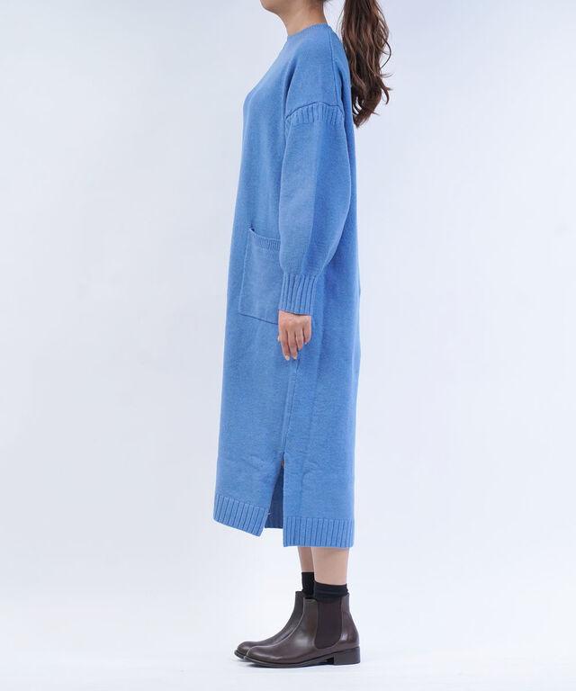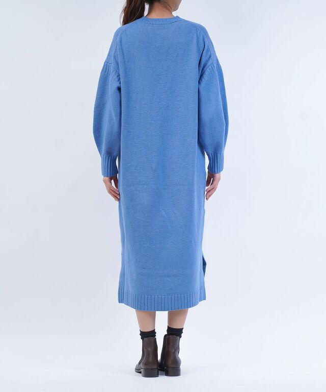ガンジーニットをベースにデザインされたニットワンピース。