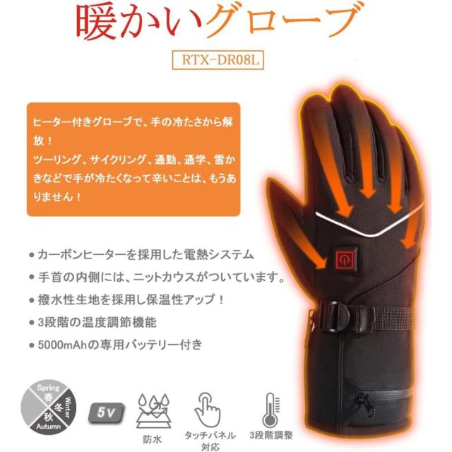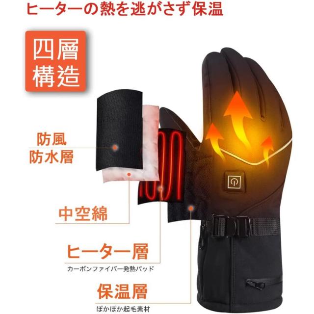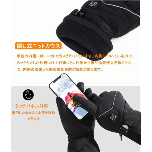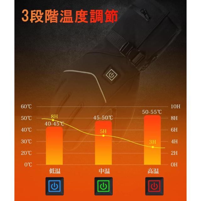 電熱グローブ 電熱手袋 暖房手袋 電熱ヒートグローブ 3段階温度調節 タッチパネル対応 保温手袋 加熱手袋 バイク用手袋 ヒーターグローブ 防寒 防水 防風 滑り止 5000mAhバッテリー付き スキー 自転車 スケート オートバイ 釣り 登山 雪かき 男女兼用クリスマスプレゼント