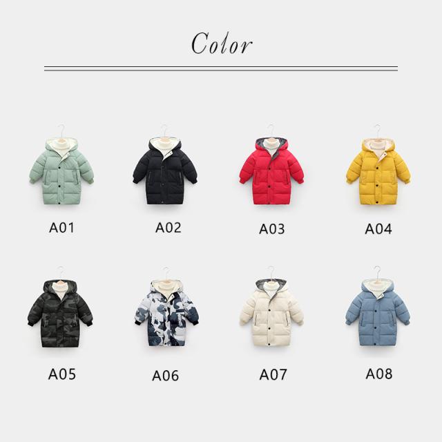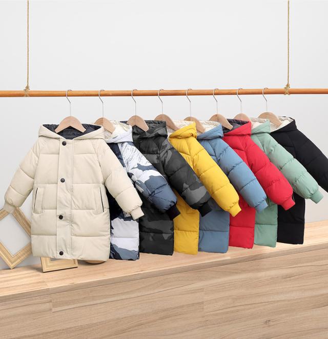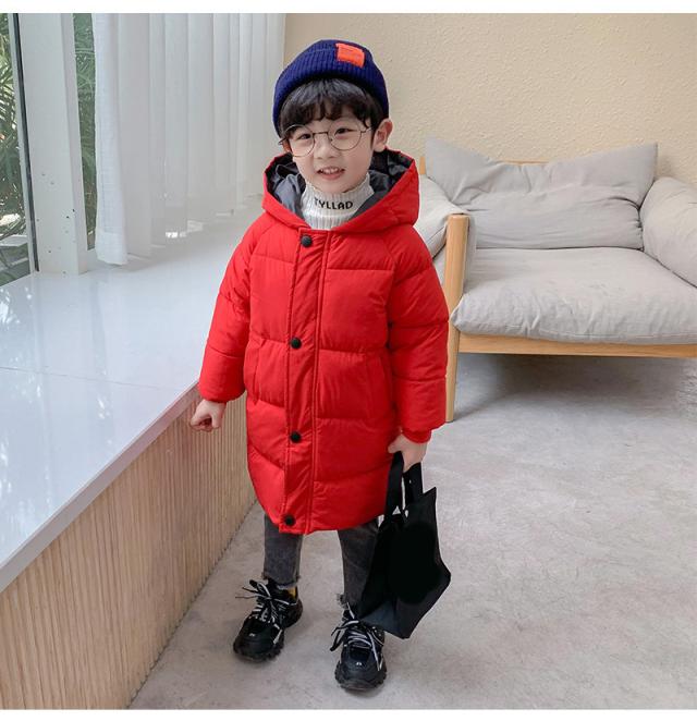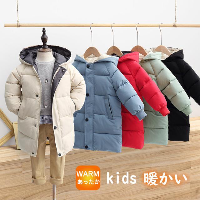 ダウンコート 子供服 ダウンジャケット 秋冬 キッズ アウター ロング丈 無地 韓国風 フード 軽量 防水 防寒 暖かいジュニア通