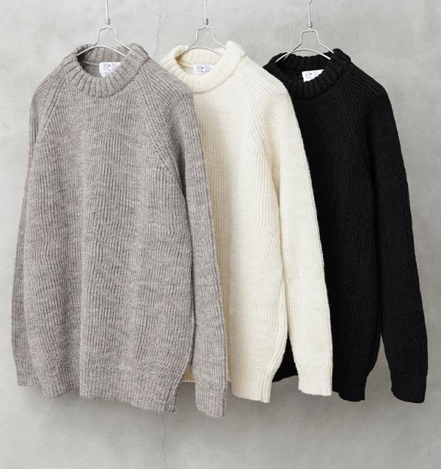 300年以上の歴史を持つ工場で作られたニットブランドのKERRY WOOLLEN MILLS ケリーウーレンミルズよりブランド定番スタイルの1つであるフィッシャーマンリブを使用したクルーネックセーターが入荷しました。かつて漁師が着ていたヴィンテージニットが由来となった伝統的なリブ編みは、厚みがあって保温性が高く、全体的に程よい伸縮性があります。1枚で着ても良いですが、シャツの上からレイヤードスタイルで着こなすなどシンプルな中にも上品なコーディネートが楽しめます。首元まできっちりと編み込まれていますので、風を通さず熱を逃がさない暖かく丈夫なニットへと仕上がっています。