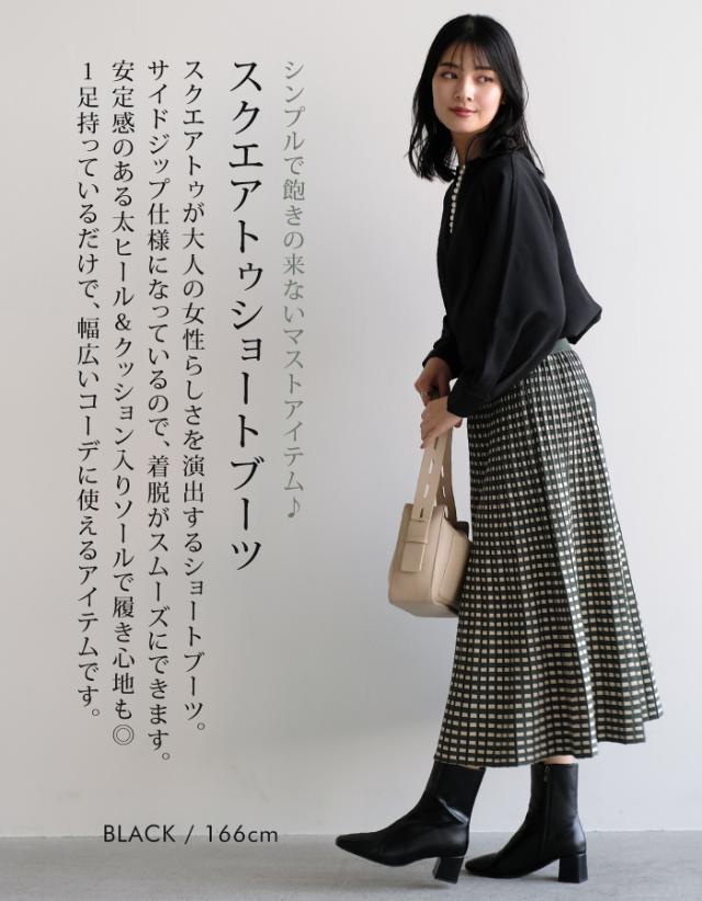 シンプルで飽きの来ないマストアイテム♪スクエアトゥショートブーツ