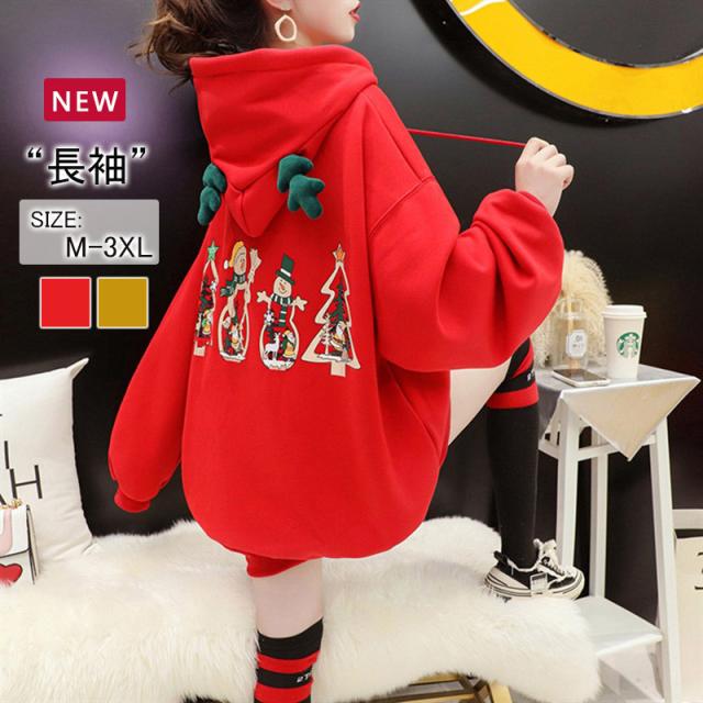 秋冬新作 クリスマス 長袖トップス 男女兼用 団体服 送料無料 おもしろ パーカー お祝い 裏起毛 無地 ハロウィン ギフト 仮装