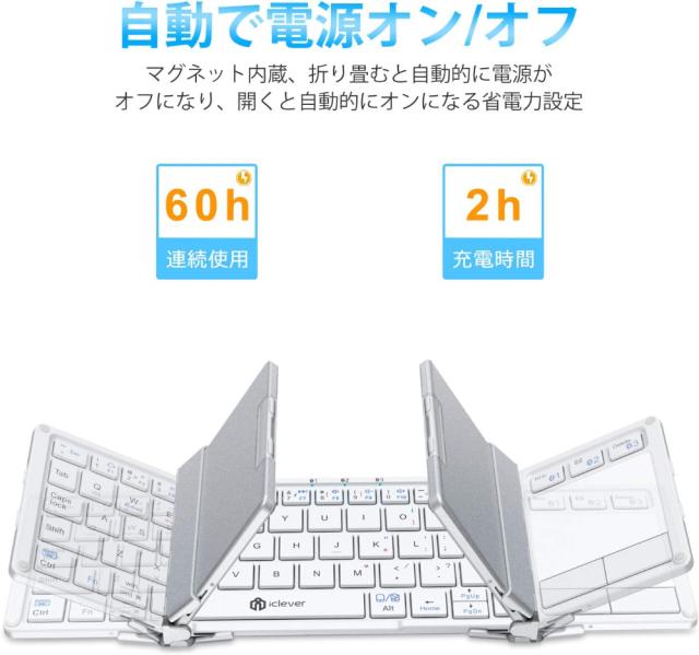 iPhone13 より少し大きさぐらいサイズで、227gの軽量ワイヤレスBluetoothキーボードです。 折りたたみ式のキーボードは、カバンに簡単に入ります。スマホとキーボードがあれば、ちょっとした仕事がどこでもできます。
