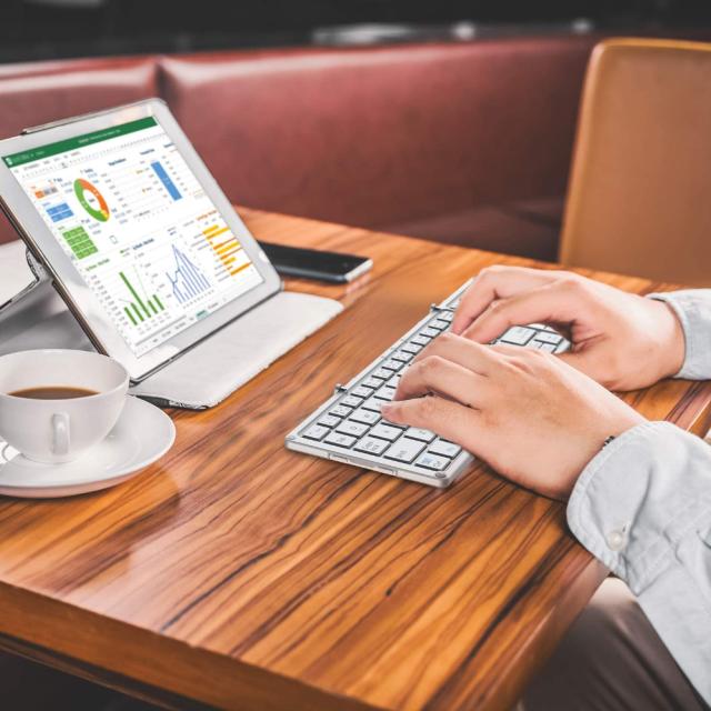 【フルサイズ&折り畳み式ワイヤレスキーボード】新型フルサイズの折り畳み式ワイヤレスキーボードです。ポケットにも収まるコンパクト設計で、持ち運びに便利。学校やビジネス、ご家庭でもスタイリッシュなキーボードとしてご愛用いただけます。