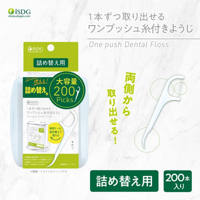 ワンプッシュ 糸付きようじ(詰替え用) 200本入 / フロス 歯間ブラシ歯間フロス 歯間ブラシ 衛生的 フロス 歯 フロスピック オーラルケア ようじ