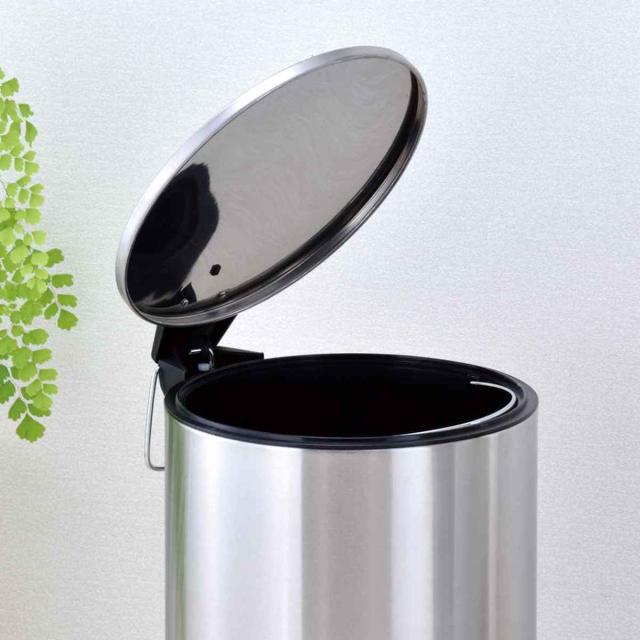 スタイリッシュなステンレスゴミ箱です。ステンレスは汚れを落としやすく、ニオイも残りにくいのが特長です。リビングや洗面所でも使いやすいコンパクトなサイズです。