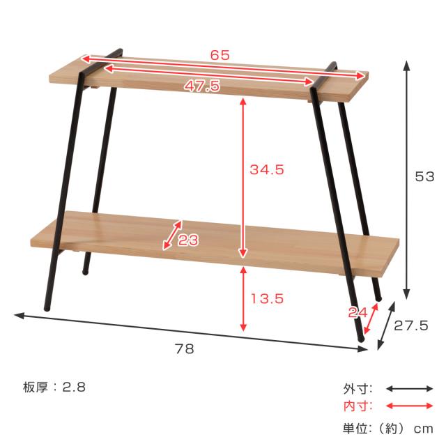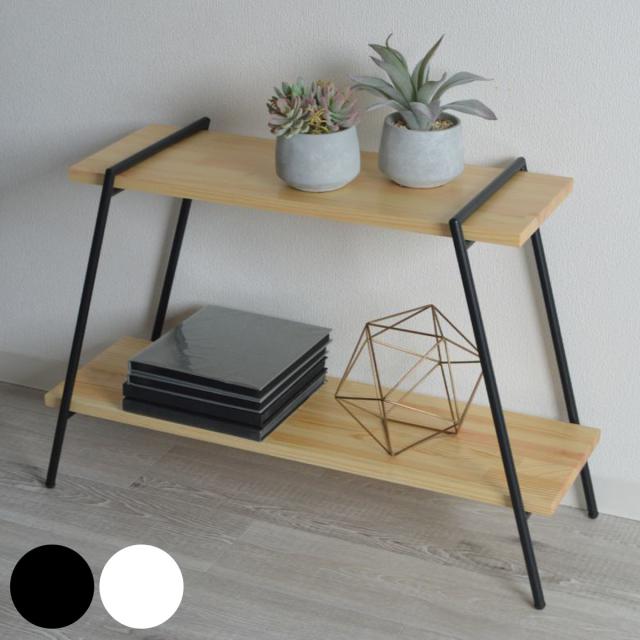 オープンラック 2段 天然木棚 アイアン脚 幅78cm ( オープンシェルフ 棚 飾り棚 天然木 アイアン ラック 日本製 木製 簡単組み立て 多目的シェルフ 収納 リビング収納 ブラック ホワイト オープンラック 木製)
