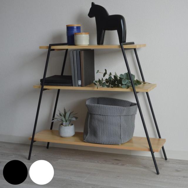 オープンラック 3段 天然木棚 アイアン脚 幅90cm ( オープンシェルフ 棚 飾り棚 天然木 アイアン ラック 日本製 木製 簡単組み立て 多目的シェルフ 収納 リビング収納 ブラック ホワイト オープンラック 木製)