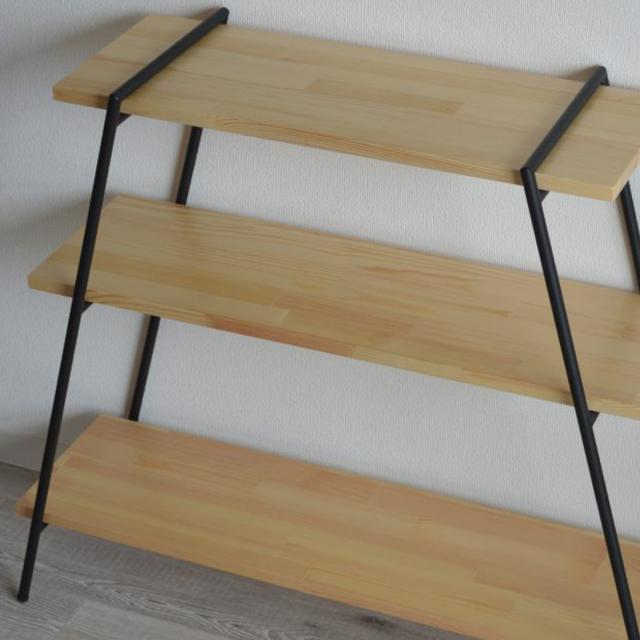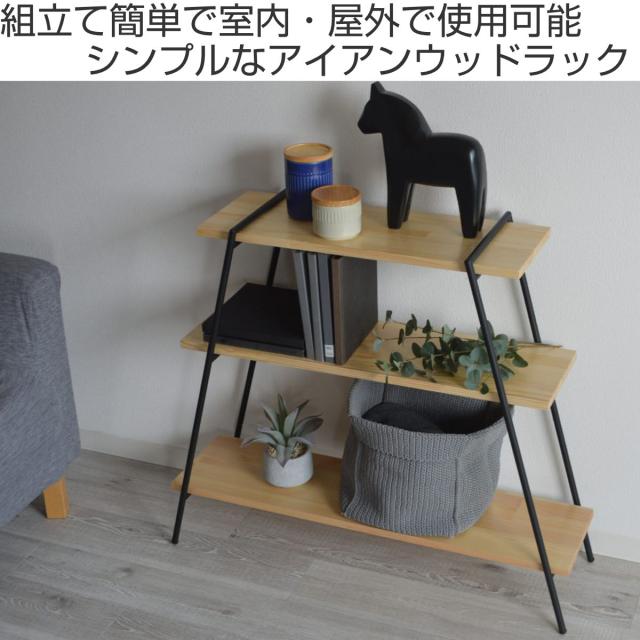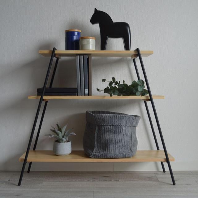 温かみのある天然木パインとアイアンフレームの空間に馴染みやすい3段ラックです。工具不要で簡単に組立てが可能です。室内だけでなくアウトドアラックとしてもお使いいただけます。