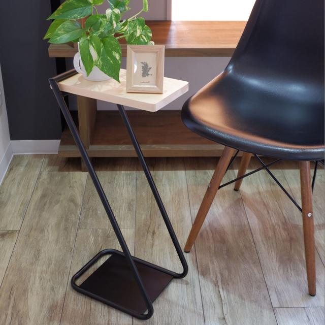天然木のパインの温もり溢れるスリムなアイアンサイドテーブル