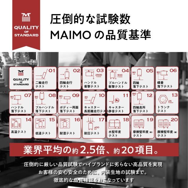 【他社平均の約2.5倍!圧倒的な品質試験項目】高品質な商品を自信を持ってお届けしたいという思いから、ブランド独自の試験基準を設定しています。