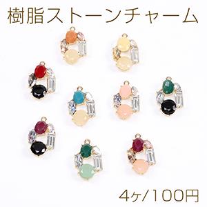 樹脂ストーンチャーム ラインストーン付き 14×22.5mm ゴールド