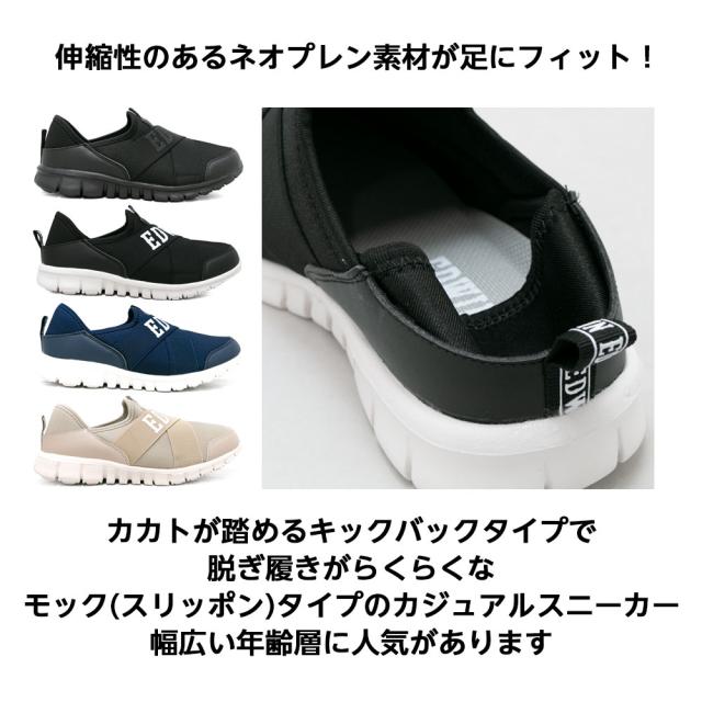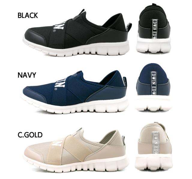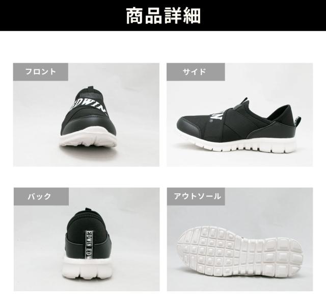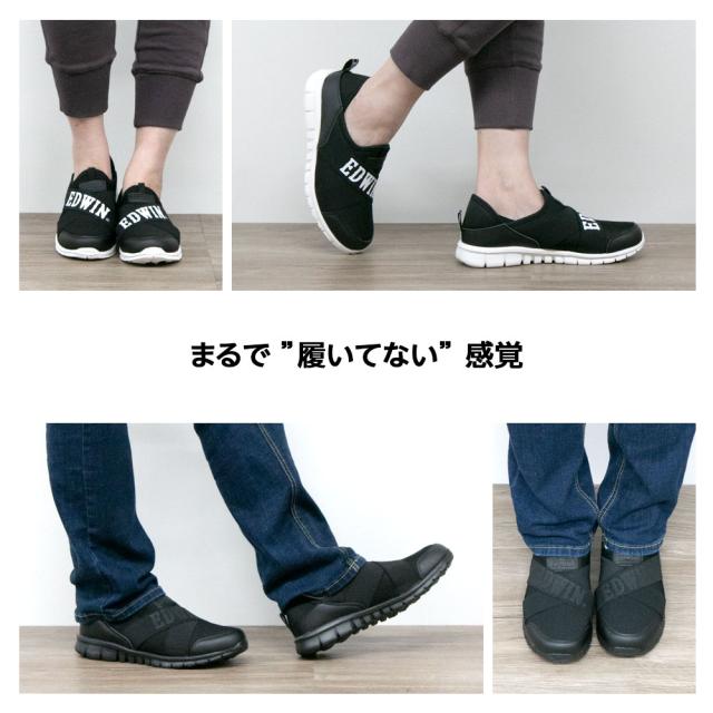 スリッポン 超軽量 かかとが踏める スニーカー メンズ レディース 紐なし ゴムバンド 柔らかい リラックスシューズ おしゃれ EDWIN エドウィン edw1010|正規販売店