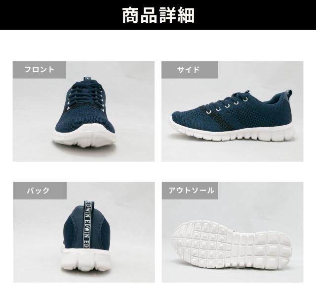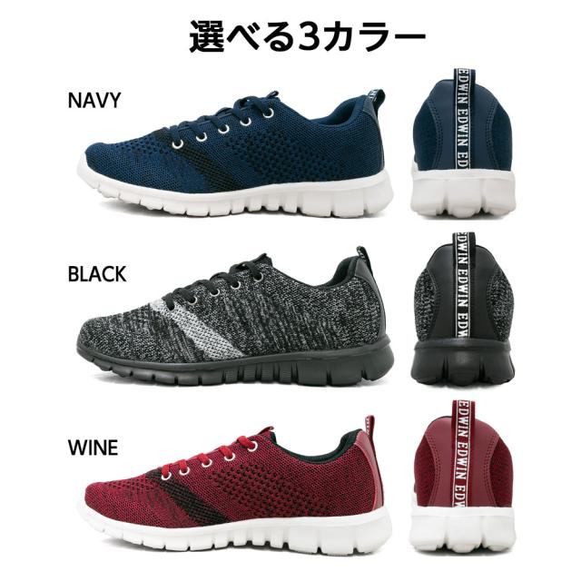 スニーカー メンズ レディース 軽量 通気性 蒸れない ニット編み カジュアル ウォーキングシューズエドウィン EDWIN edw1011
