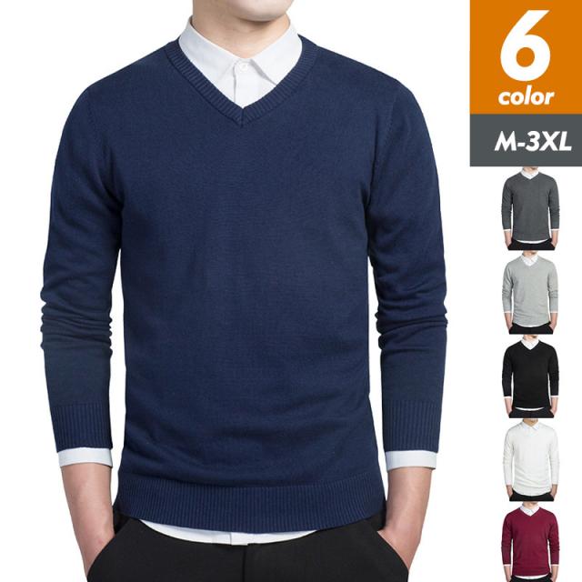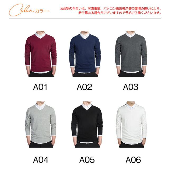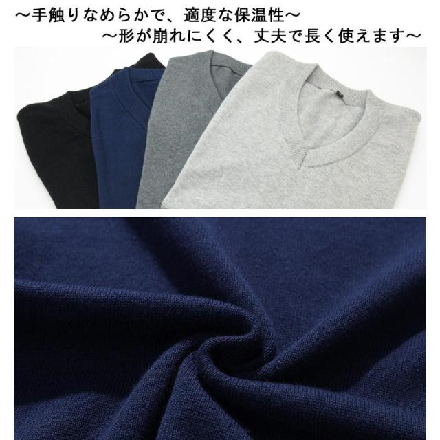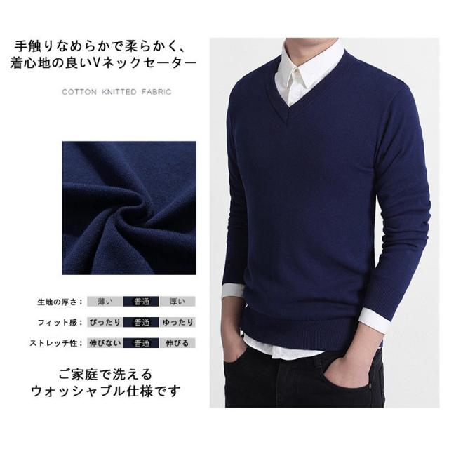 ニット セーター メンズ Vネック ビジネス 綿 長袖 インナー ゆったり 無地 シンプル 吸水吸湿 毛玉ができにくい 制服 着痩