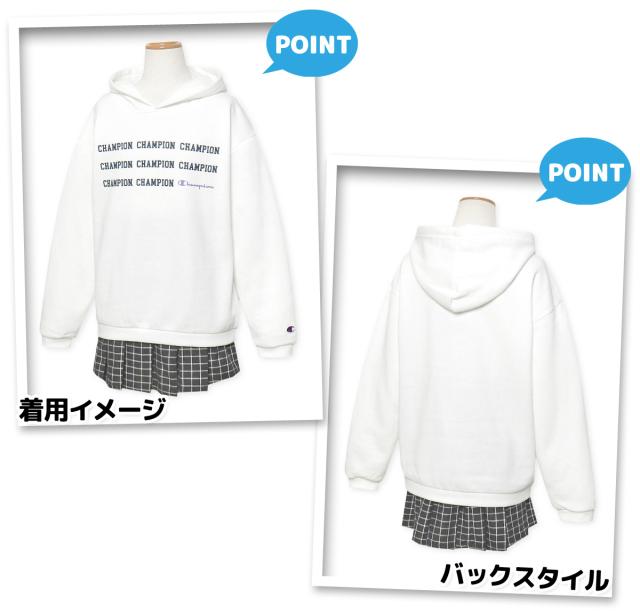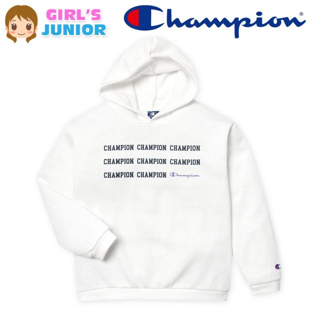 【送料無料】女児 ジュニア 裏起毛 長袖 プルパーカー Champion/チャンピオン あったか素材 保温性 スウェット ゆったり ロゴ 子供服 女の子 140cm 150cm 160cm td-0537a-wt【メール便対応】