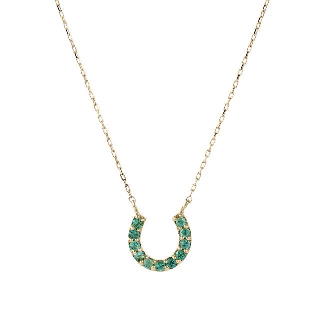 5月の誕生石でもあるエメラルドを、幸せをキャッチすると古くから言い伝えのある馬蹄デザインのネックレストップにしました。