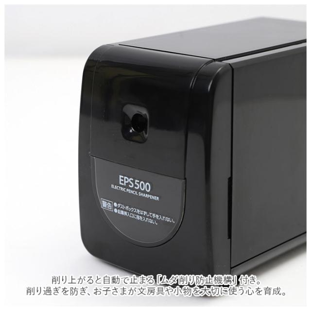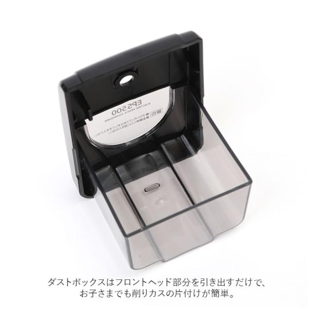 | 商品説明 | ・オトナ仕様のシンプルデザイン。パワフル&シャープに削れる「電動シャープナー EPS500」 ・モノトーンのすっきりとしたデザインが、リビングやオフィスのインテリアにすんなりフィット。 ・大人から子どもまで、幅広い世代の誰もが安全に使える3つの機能を搭載。 ・1・・・削り上がると自動で止まる「ムダ削り防止機構」付き。削り過ぎを防いで、お子さまが身の回りの文房具や小物を大切に使う心を育成。 ・2・・・ダストボックスを取り出すと作動しない「安全オートストッパー」付きで、小さなお子さまが使っても安心。 ・3・・・連続使用による加熱を防ぐ「オーバーヒート防止機構」でさらに安全。電気代の節約にも役立ち、お財布にも優しいのが嬉しいポイント。 ・ダストボックスはフロントヘッド部分を引き出すだけで、お子さまでも削りカスの片付けが簡単。 ・鉛筆削り中のシャープナーのズレやデスクからの落下を防ぐ、底面にはピタッと付いて滑らない吸盤付き。 ・お子さまの家庭学習用にはもちろん、ご自宅でのテレワーク、お仕事で製図やスケッチをされる方に最適。 ・お子さまやお孫さまへの入学祝いのプレゼントにもオススメ。 |