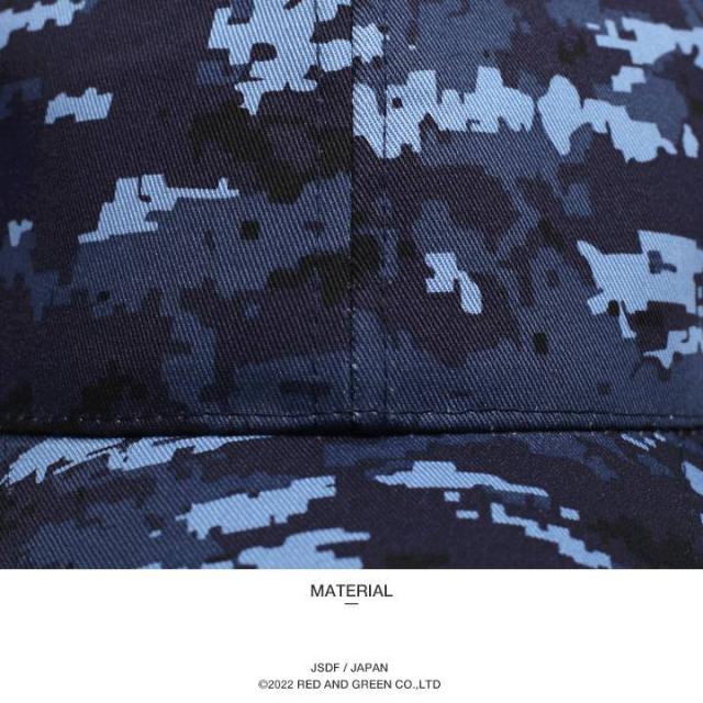 型は、フェイスに縮み・型崩れ防止の芯があり、ボディ全域の海上自衛隊デジタル迷彩柄で所属部隊がわかるように工夫された「6面型野球帽」。