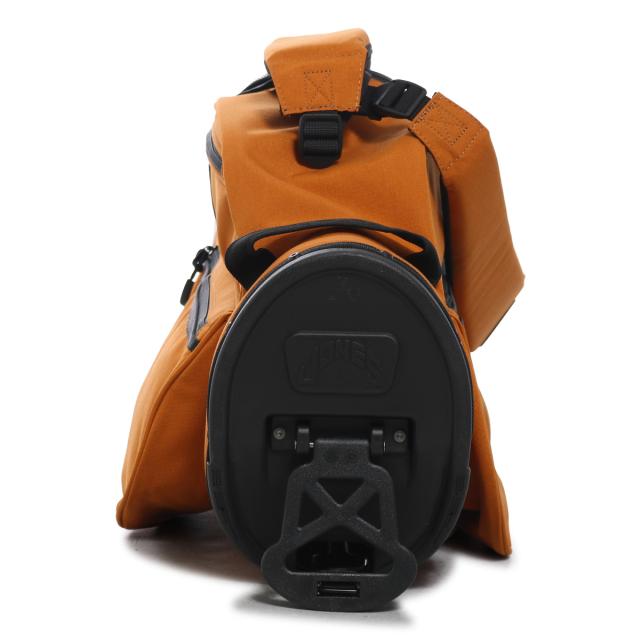 ジョーンズ社のスタンドバッグ、トゥルーパーシリーズの新型です。ナイロンキャンバスとホワイトのビニールレザーのコンビです。ダブルショルダーを取り入れた形は、まさにアメリカンアスリートスタイルです。重さは約2.57kgと軽量です。サイズは横7インチx縦9インチで楕円形になっています。