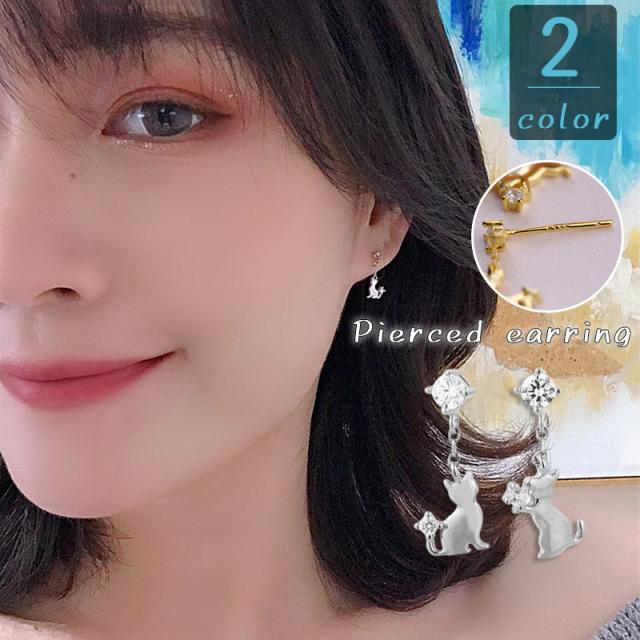 ピアス レディース 女性 アクセサリー スタッドピアス 猫 ネコ かわいい キュート おしゃれ 上品 高級感