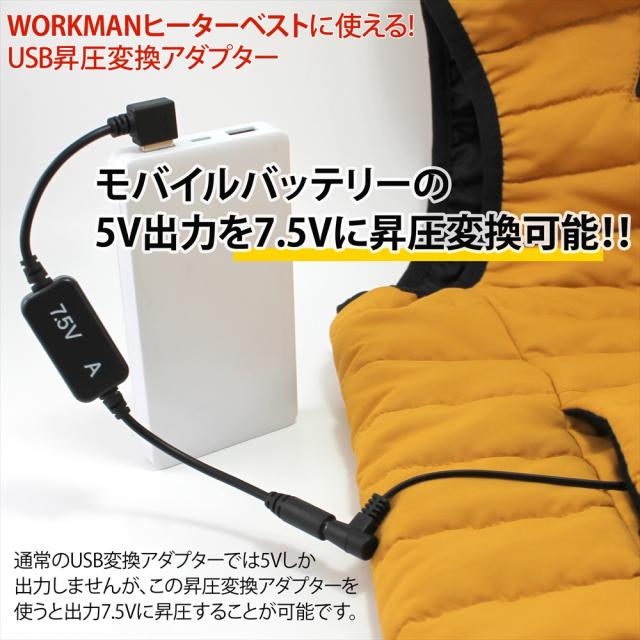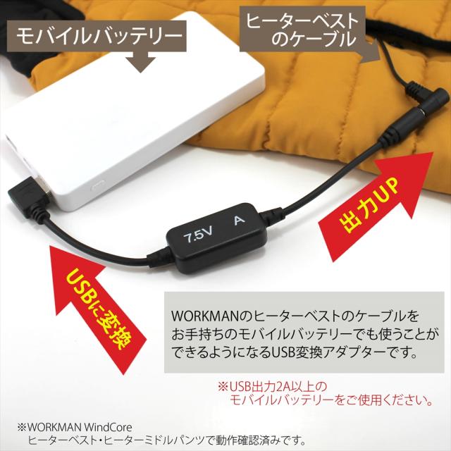 ヒーターベスト ワークマン USB 変換 ヒートベスト USB昇圧変換アダプタ モバイルバッテリー L型 変換プラグ WindCore 【7.5V-A】 ウィンドコア WORKMAN ヒーターミドルパンツ 電熱ベスト ヒーターパンツ 変換 アダプター ケーブル