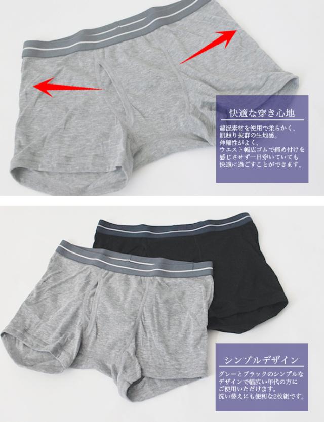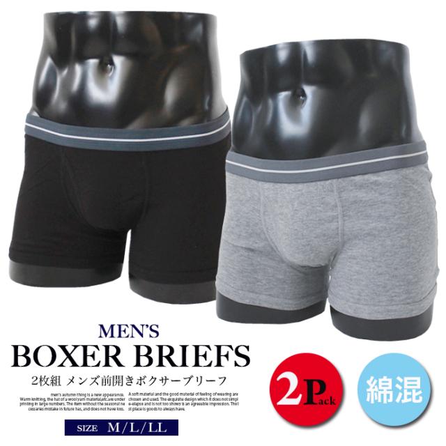 ボクサーパンツ ボクサーブリーフ 2枚組 下着 インナー 綿混 ベーシック シンプル やわらか 前開き メンズ 送料無料