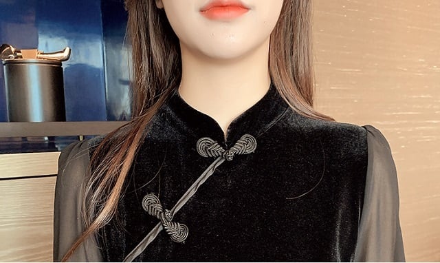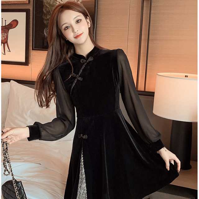ドレス ワンピース シースルー パーティードレス 長袖 ひざ丈 ミニ ハイウエスト Aライン エレガント チャイナドレス風 スリム おしゃれ パーティー フォーマル トレンド 秋 冬 大きいサイズ レディース キレセク