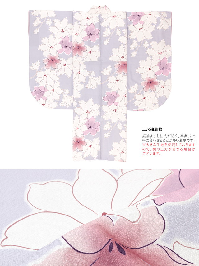 ※着物の柄部分は大きな生地を使用して作られておりますので、色や柄の出方、模様の配置等が画像と異なる場合がございます。