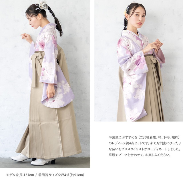 袴セット 卒業式 大学生 小学生 レディース 薄紫系 ライトパープル 百合 ゆり 花 ベージュ 袴4点セット 和装 着物セット 販売 購入 送料無料