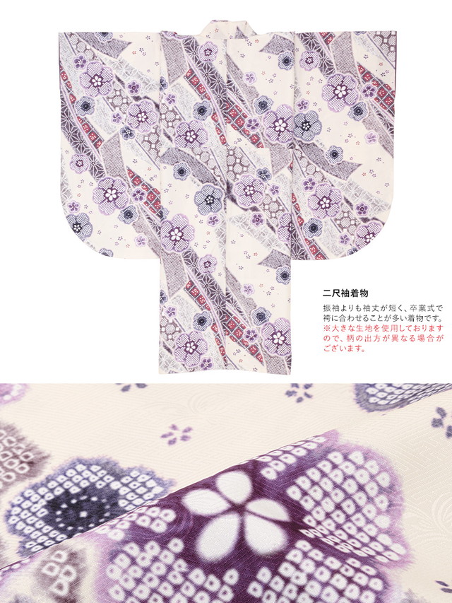 ※着物の柄部分は大きな生地を使用して作られておりますので、色や柄の出方、模様の配置等が画像と異なる場合がございます。