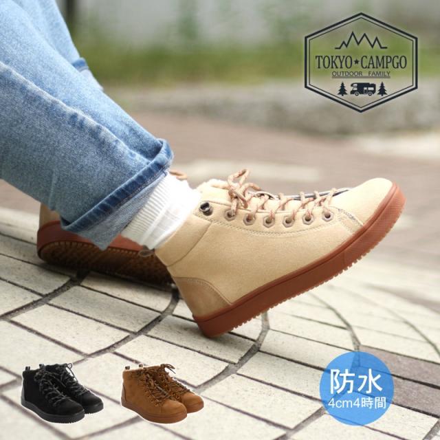 TOKYO☆CAMPGO トーキョーキャンプゴー 防水 スニーカー レースアップ ハイカット HI CUT スリッポン 滑りにくい 防滑ソール レインシューズ レインブーツ 撥水 アウトドア 全天候型 ボア ファー 秋 冬 hk5721