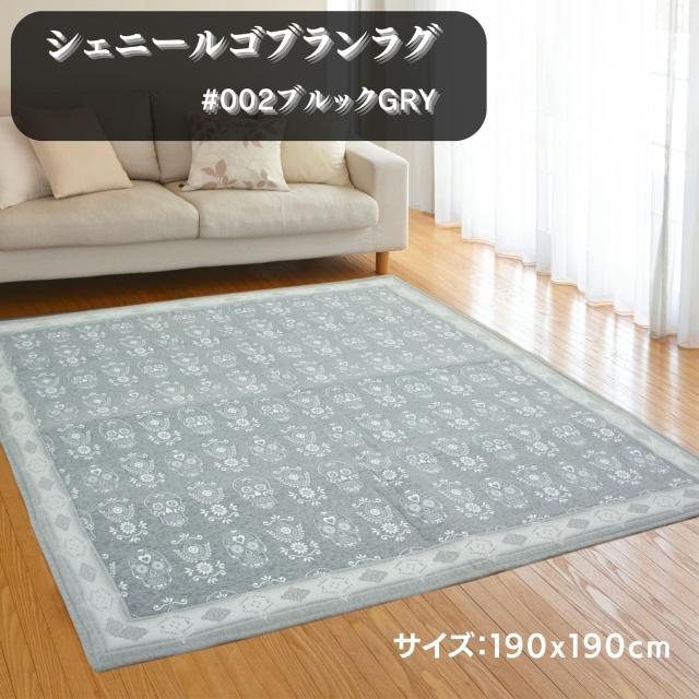 ラグ・カーペット ブルック#002GRY 190x190cm 2畳用 ふっくらウレタン入 【オールシーズン・ホットカーペット・こたつ敷布団】