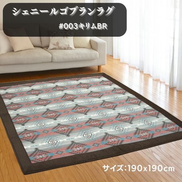 ラグ・カーペット キリム#003/GRYBR 190x190cm 2畳用 ふっくらウレタン入 【オールシーズン・ホットカーペット・こたつ敷布団】
